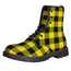 Step out with confidence in the Yellow And Black Buffalo Check Print Lace-Up Boots. Built with a 100% vegan PU leather upper and a durable rubber outsole, these lace-up boots balance everyday comfort with reliable traction—great for daily wear without overpromising performance.