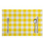Bring both style and function to your dining table with the Yellow And White Buffalo Check Print Placemat, crafted from linen-look polyester fabric. With its natural texture and simple design, this placemat offers a practical way to protect your table while also enhancing your mealtime atmosphere.