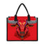 Red And Black Bull Skull Pattern Print Canvas Tote Bag