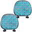 White Blue Hibiscus Floral Pattern Print Car Headrest Covers