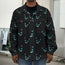 Black Cheshire Cat Pattern Print Sherpa Lined Zip Up Hoodie