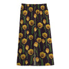 Stripe Sunflower Pattern Print Cotton Front Slit Maxi Skirt