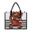Black And White Dachshund Pattern Print Leather Tote Bag With Zipper