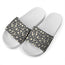 Grey Daisy Floral Pattern Print White Slide Sandals