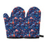 Cute Dino Leaves And Flowers Print Oven Mitts