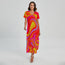 Red And White African Dashiki Print Silk V-Neck Kaftan Dress