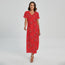 Red And White African Dashiki Print Silk V-Neck Kaftan Dress