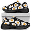 Are you looking for unique shoes? Check our Black Fried Eggs Pattern Print Black Chunky Shoes on GearFrost. Our shoes are handcrafted to the highest quality standards and made-to-order for you!