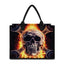 Carry your essentials in style with the Flaming Skull And Cross Wrench Print Canvas Tote Bag. Designed for daily use, this tote bag combines a modern look with practical features, making it a versatile companion for shopping trips, work, or travel.