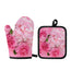 Peony And Rose Print Oven Mitt And Pot Holder Set