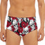 Stay confident at the pool or beach with the Red Peony Skull Pattern Print Men's Triangle Swim Briefs. Designed with a blend of 88% polyester and 12% spandex, these swim briefs provide comfort, stretch, and support for everyday swimwear use. The smooth fabric and regular fit make them practical for both swimming and lounging.