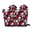 Red Peony Skull Pattern Print Oven Mitts