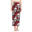 Red Peony Skull Pattern Print Side Slit Maxi Skirt