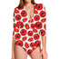 Red Poppy Pattern Print Long Sleeve Swimsuit
