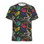 Colorful Dinosaur Fossil Pattern Print Men's Short Sleeve Shirt