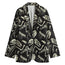 Functionality meets fashion with two spacious side pockets, ideal for carrying small essentials like your phone, keys, or wallet. The blazer is finished with stitching in black or white, automatically matched to suit the design for a seamless appearance. This attention to detail enhances its overall elegance, making it a standout piece for any occasion.