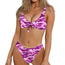Pink Flamingo Pattern Print Front Bow Tie Bikini