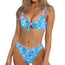 Pink Teal Mermaid Scales Pattern Print Front Bow Tie Bikini