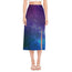Purple Turquoise Galaxy Space Print Side Slit Midi Skirt