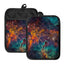 Teal Orange Universe Galaxy Space Print Pot Holders With Pocket