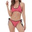 Pink And Yellow Giraffe Pattern Print Halter Scoop Tie Side Bikini