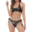 Black And White Mechanic Pattern Print Halter Scoop Tie Side Bikini