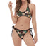 Rose Sugar Skull Pattern Print Halter Scoop Tie Side Bikini