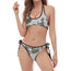 Black And White Mechanic Pattern Print Halter Scoop Tie Side Bikini
