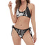 Monochrome Punk Skull Print Halter Scoop Tie Side Bikini