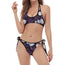 Rose Sugar Skull Pattern Print Halter Scoop Tie Side Bikini