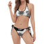 Black And White Mechanic Pattern Print Halter Scoop Tie Side Bikini