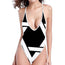 Black And White Star of David Print High Cut One Piece Swimsuit