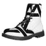 Step out with confidence in the White And Black Star of David Print Lace-Up Boots. Built with a 100% vegan PU leather upper and a durable rubber outsole, these lace-up boots balance everyday comfort with reliable traction—great for daily wear without overpromising performance.
