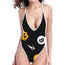 Halloween Monsters Pattern Print High Cut One Piece Swimsuit