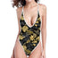Black And Gold Tropical Pattern Print One Piece High Cut Swimsuit
