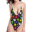 Halloween Monsters Pattern Print High Cut One Piece Swimsuit