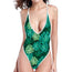 Green Tropical Monstera Pattern Print One Piece High Cut Swimsuit