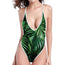 Tropical Palm Leaf Print High Cut One Piece Swimsuit