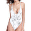 White Grey Smoke Marble Print High Cut One Piece Swimsuit