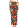 Pink Red Rose Floral Pattern Print High Slit Maxi Skirt