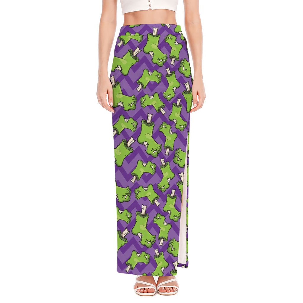 Happy Sheep Pattern Print High Slit Maxi Skirt