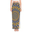 Blue And Yellow Motion Illusion Print High Slit Maxi Skirt