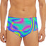 Stay confident at the pool or beach with the Turquoise Holographic Trippy Print Men's Triangle Swim Briefs. Designed with a blend of 88% polyester and 12% spandex, these swim briefs provide comfort, stretch, and support for everyday swimwear use. The smooth fabric and regular fit make them practical for both swimming and lounging.