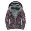 Black Sunflower Pattern Print Sherpa Lined Zip Up Hoodie
