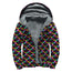 Black Sunflower Pattern Print Sherpa Lined Zip Up Hoodie