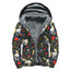Black Sunflower Pattern Print Sherpa Lined Zip Up Hoodie