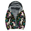 Black Sunflower Pattern Print Sherpa Lined Zip Up Hoodie