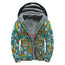 Black Sunflower Pattern Print Sherpa Lined Zip Up Hoodie