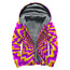 Black Sunflower Pattern Print Sherpa Lined Zip Up Hoodie