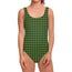 Deep Green Houndstooth Pattern Print One Piece Swimsuit